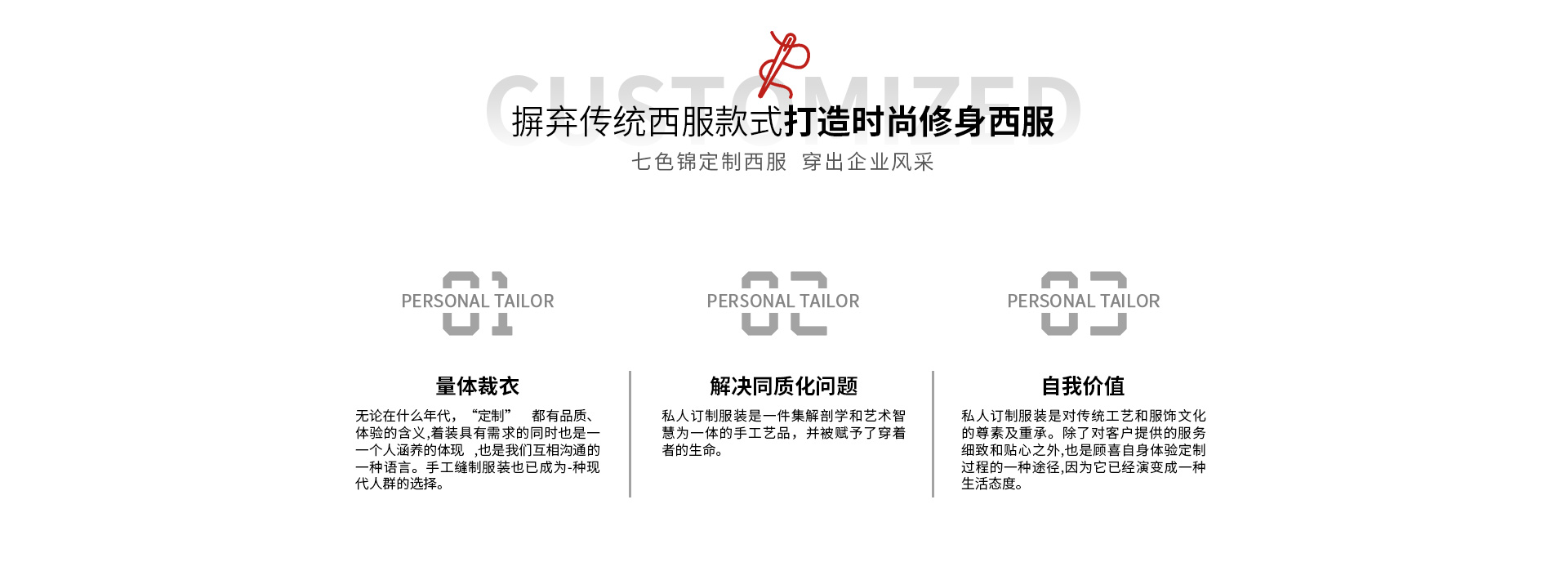 - 安徽七色錦服飾有限公司成立于2011年07月19日,公司位于安徽省合肥市包河工業(yè)區(qū)延安路17號,廠房面積約5000平方米,投資資金1000萬元。作為一家集服裝設計,生產,服務于一體的中、檔次高的西裝、襯衫企業(yè),服務專業(yè)、顧客滿意”的經營宗旨、以“客戶為先、市場導向”為經營理念更好的服務于廣大消費者、依靠高超的技術,先進的設備,嚴格的管理,穩(wěn)定的產品質量,精細的制作工藝,周到的客戶服務贏取了廣消費者的信賴和好評.各類服裝服飾專業(yè)技術人員100多人,各類先進的生產設備150多臺,具有設計、制造各類服裝服飾的能力。公司是以從事中、檔次高的西服、襯衫、西褲、西裙、大衣、領帶、皮鞋等設計、生產、銷售一體化為主,為證券、單位、團體、酒店、學校等企事業(yè)單位定制專業(yè)的服飾公司并通過了ISO19001:2015質量體系認證、ISO14001:2015環(huán)境體系認證、OHSAS18001:2007職業(yè)健康安全管理體系等認證...